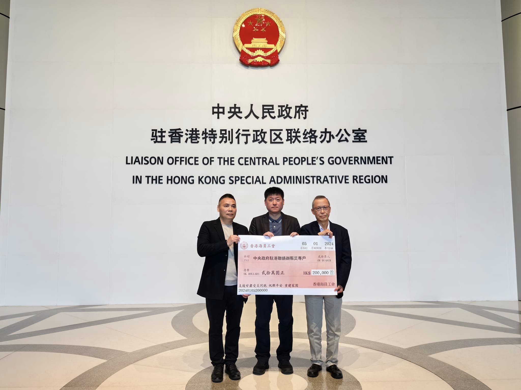 香港海員工會為甘肅地震災區同胞捐款20萬元