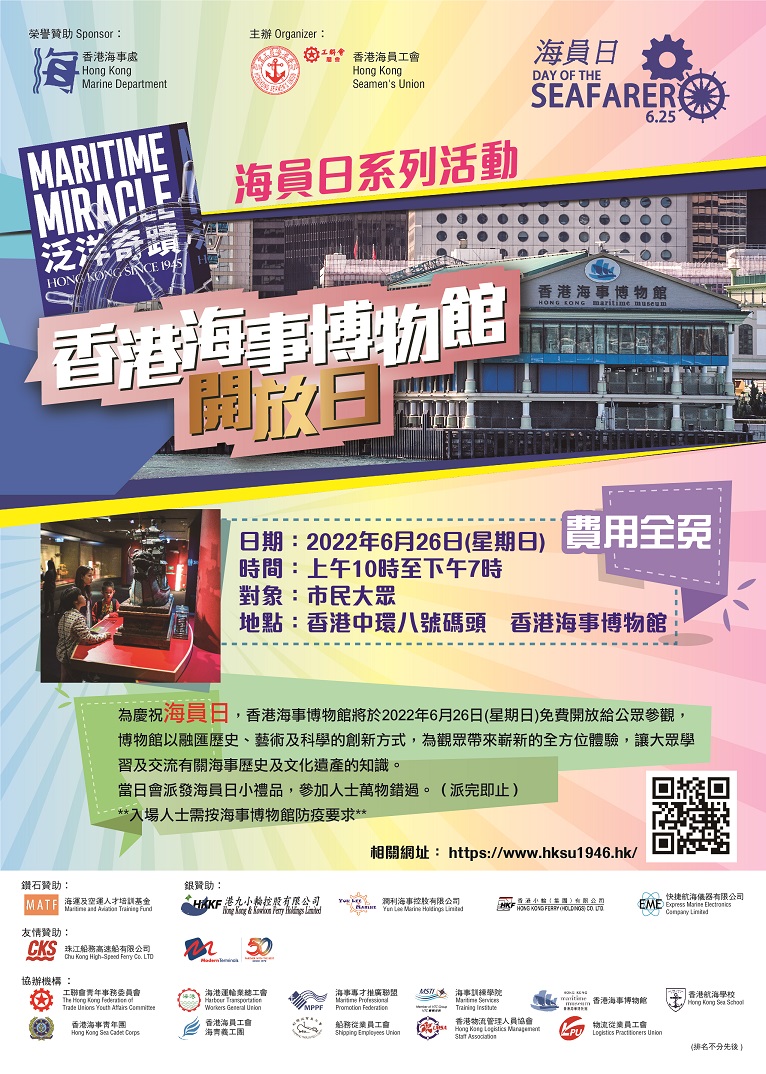 為慶祝海員日,香港海事博物館將於2022年6月26日(星期日)免費開放給公眾參觀,博物館以融匯歷史、藝術及科學的創新方式,為觀眾帶來嶄新的全方位體驗,讓大眾學習及交流有關海事歷史及文化遺產的知識。