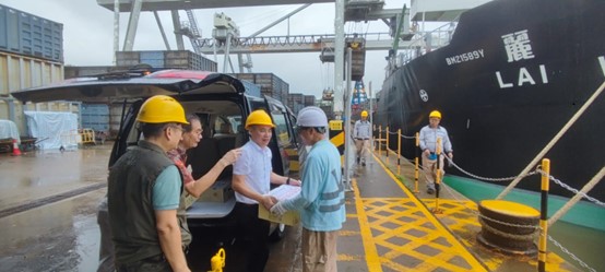 當天上午,香港海員工會團隊,包括主席張世添、副主席楊開強、秘書長黎啟穗、財務主任鄭永坤以及執行執委溫志光等,一同前往稔灣堆填區碼頭,探望環保船上的船員。