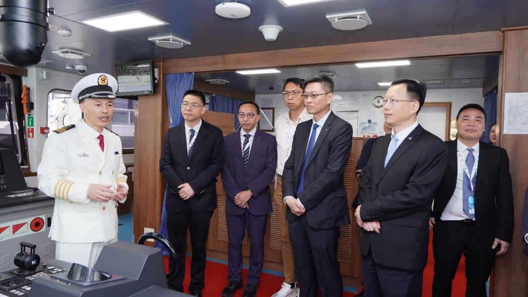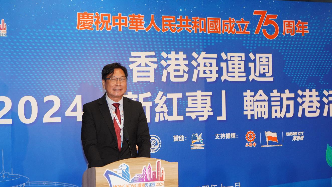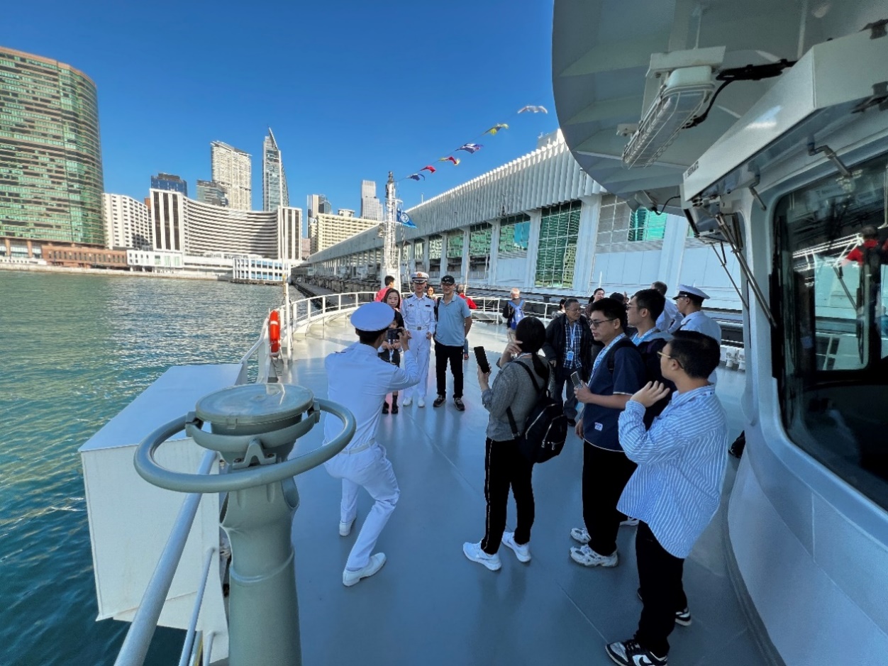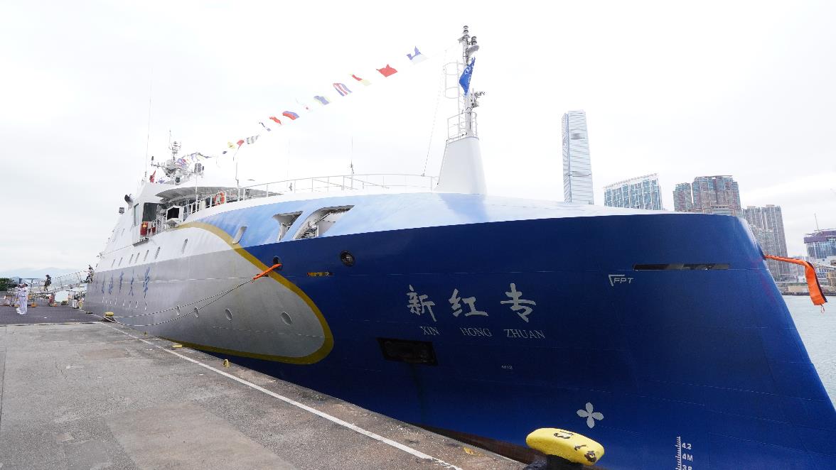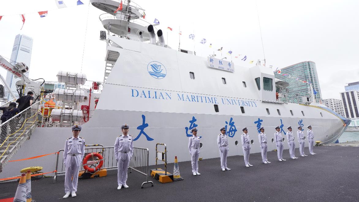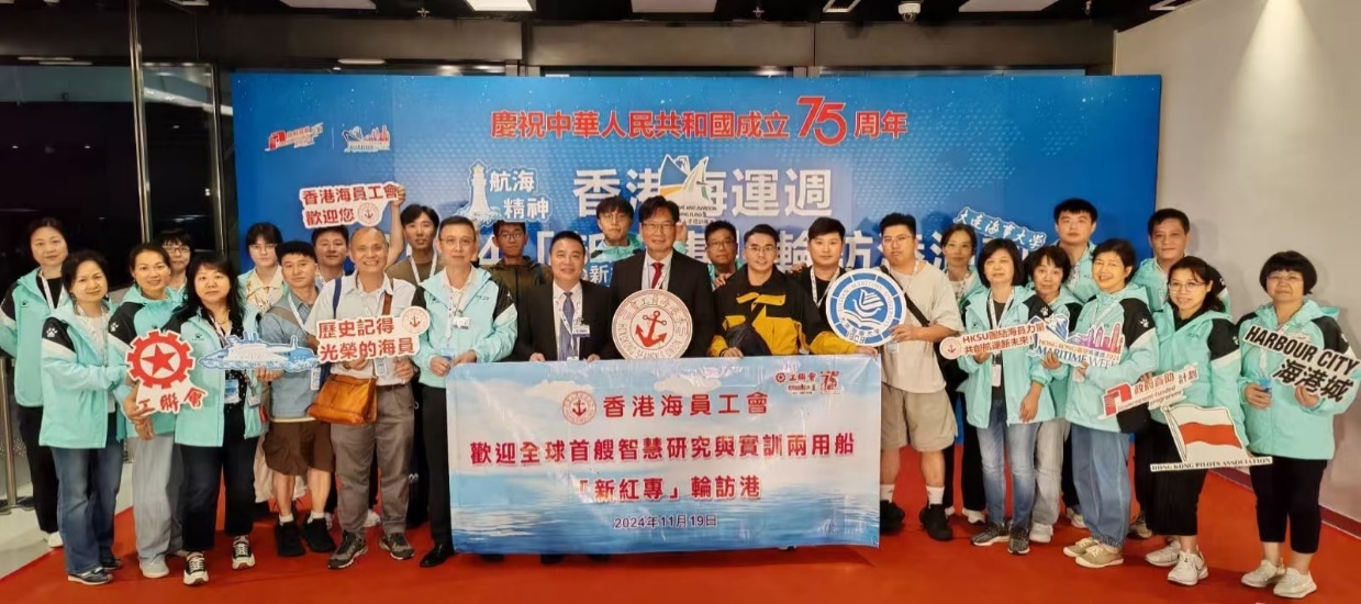 2024年11月19日,全球第一艘智慧研究與實訓兩用船,大連海事大學的「新紅專」輪訪港,停泊於尖沙咀海運大廈碼頭。