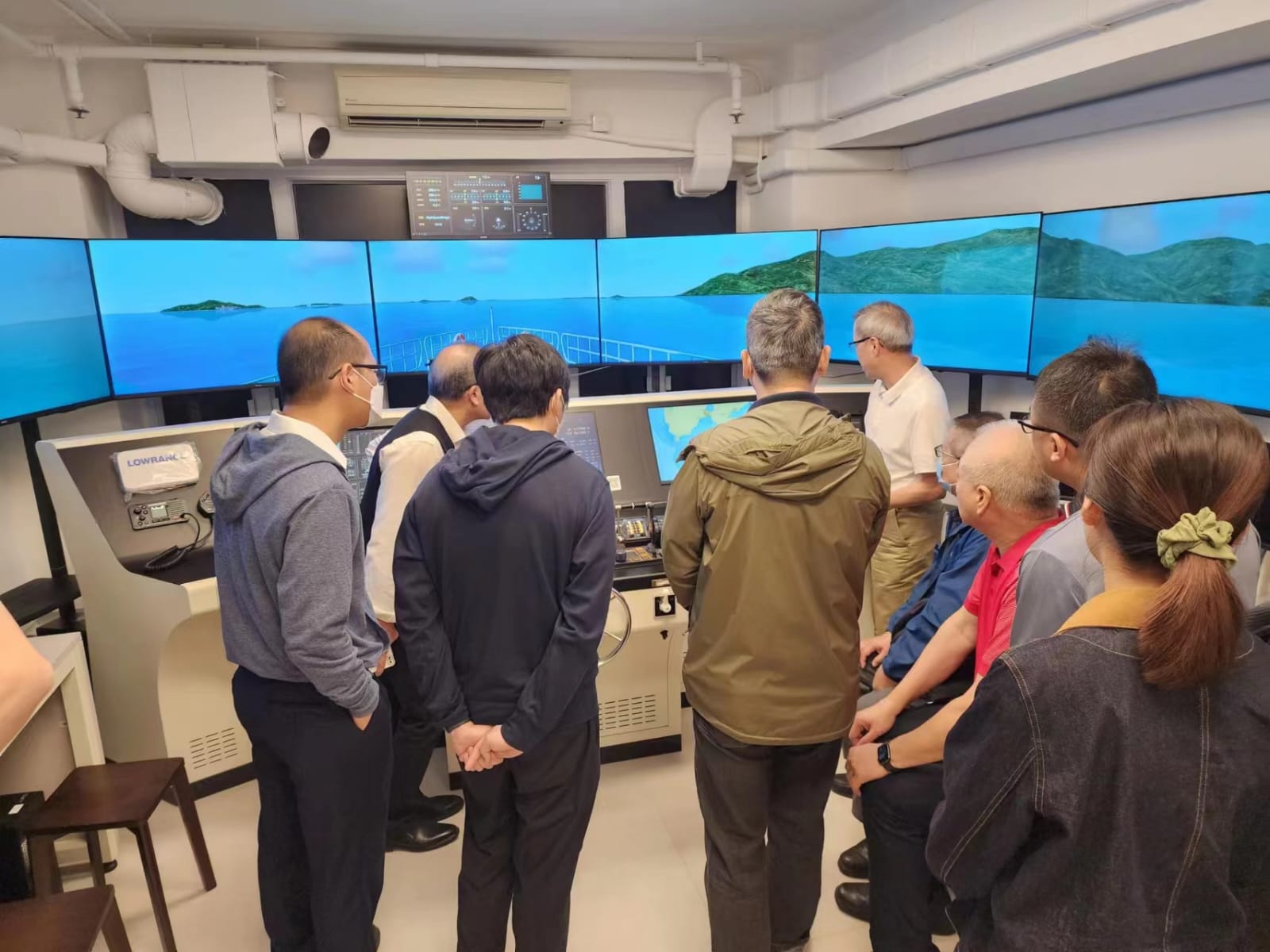 香港海員工會上環新會所裝修工程即將完成。新會所模擬室增設了三套新3D模擬器、三套模擬雷達教學機和新增設一套AI遊艇VR實景操縱船。3月22日,新會所迎來第一個霧航培訓班,學員留心聽導師講解並認真訓練。