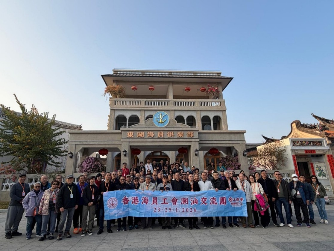 2026年1月23日至25日,香港海員工會組織會員及家屬83人前往潮汕地區進行參訪交流。交流團不僅穿越了潮汕兩地,品味美食、欣賞風景、參觀學習,更是感受「勤儉、拼搏」的潮汕人精神,深入瞭解潮汕這片嶺南文化熱土的深厚底蘊與家國情懷。
