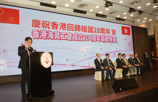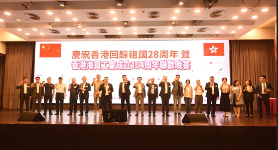 香港海員工會主席周德礎、工聯會會長吳秋北、香港政府運輸及物流局副局長廖振新分別在晚宴上致辭。共同回顧28年來「一國兩制」在香港的成功實踐,共同見證了這段歷程中的成就與變遷。我們堅信,有偉大祖國的堅定支持,有「一國兩制」方針的堅實保障,香港定能開創更加璀璨輝煌的美好明天。