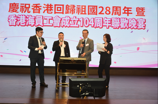 2025年7月4日,香港海員工會慶祝香港回歸祖國28周年暨香港海員工會成立104周年聯歡晚宴在龍寶國際賓館盛大舉行。