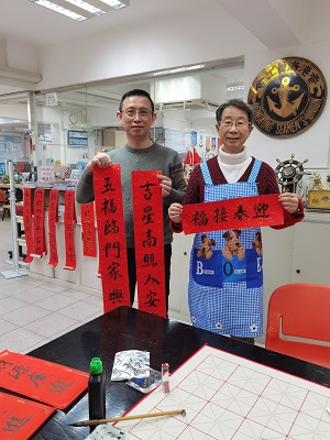 2025年元月13日至14日,香港海員工會分別邀請了李建華船長和梁子俊先生來到本會佐敦辦事處,為工友和會員寫揮春、送福字,用筆墨傳遞溫暖與祝福。 活動現場,李船長和梁先生揮毫潑墨,將一副副寓意吉祥、承