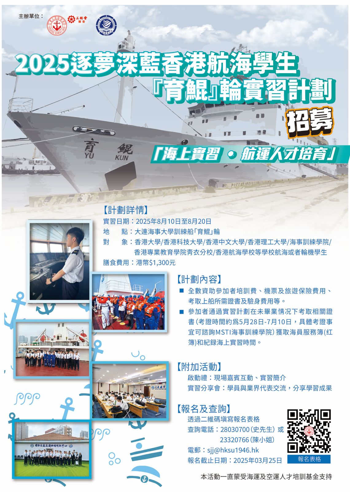 「2025逐夢深藍」香港航海學生『育鯤』輪實習計劃 正式招募