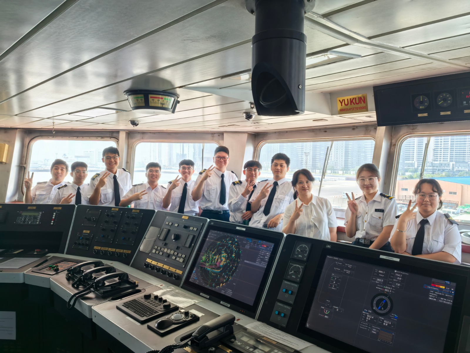 8月13日,學生們開始了隨船實習。教學團隊帶領他們進行了船舶操控、導航、安全管理等專業課程的學習。8月15日,“育鯤”輪正式出航,學生們在實際操作中深入瞭解了海上航行的每個環節,從船舶起航到導航儀器的使用,學生們都積極參與其中,收穫頗豐。