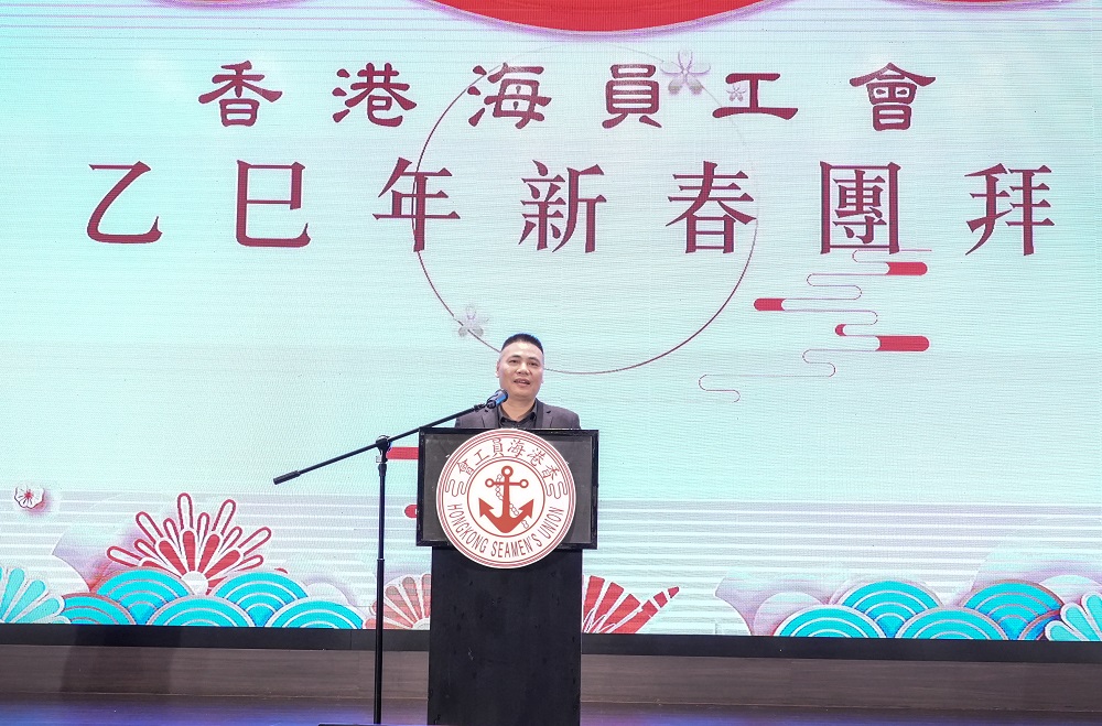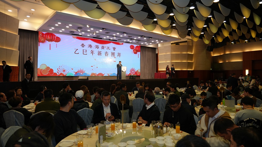 工會主席周德礎和副主席楊開強在致辭中代表香港海員工會向全體會員及家屬致以新年的問候和祝福,並回顧了過去一年中,工會積極助力香港經濟複常,維護海員權益,推動航運人才培養,並積極參與社會公益活動。工會也將繼續秉承愛國愛港傳統,適應時代發展,為會員提供更好的服務。