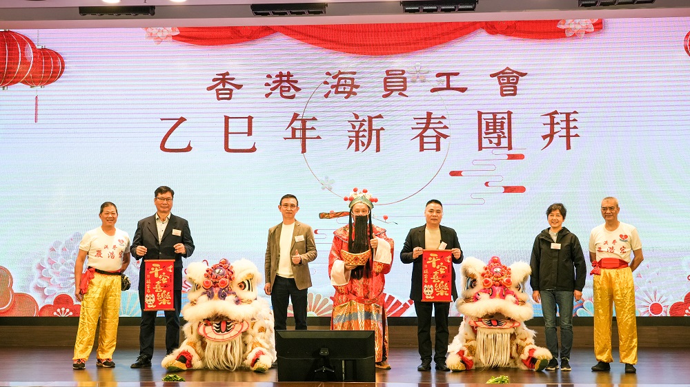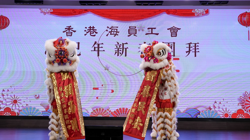 2025年2月21日至23日,香港海員工會一連三日,在龍堡國際賓館胡應湘堂宴會廳舉辦新春團拜,約1600多名會員及家屬參加。活動伊始,中國傳統特色的點睛儀式和精彩的舞獅表演拉開了團拜會的序幕,為現場觀眾帶來了新年的好運和祝福,財神爺手持金元寶,為每一位會員及家屬送上財源廣進、福氣滿滿的美好祝願。