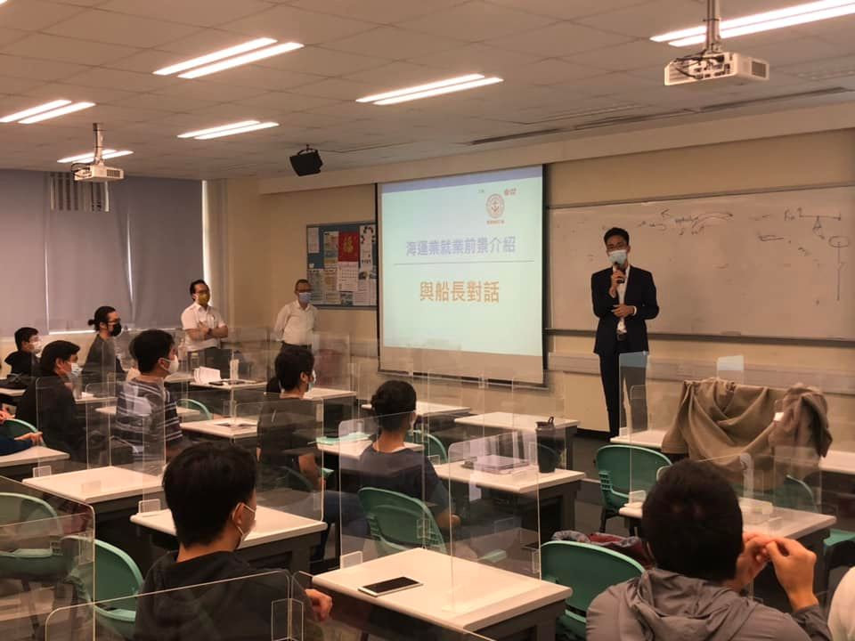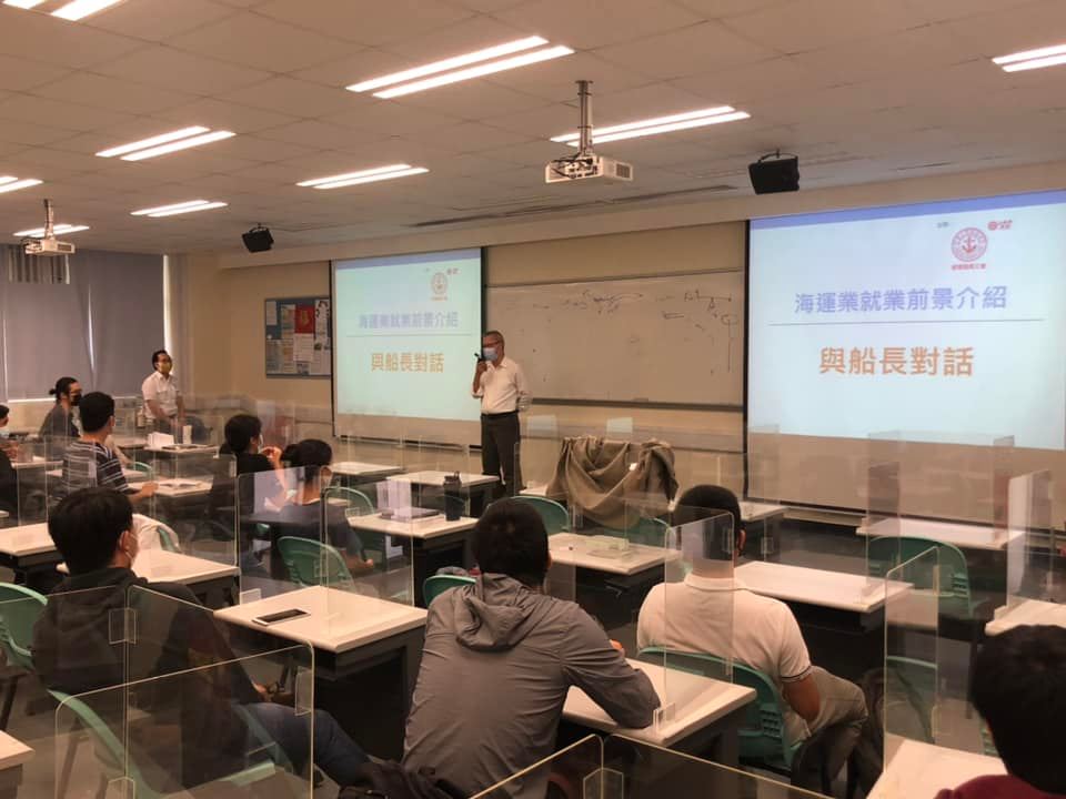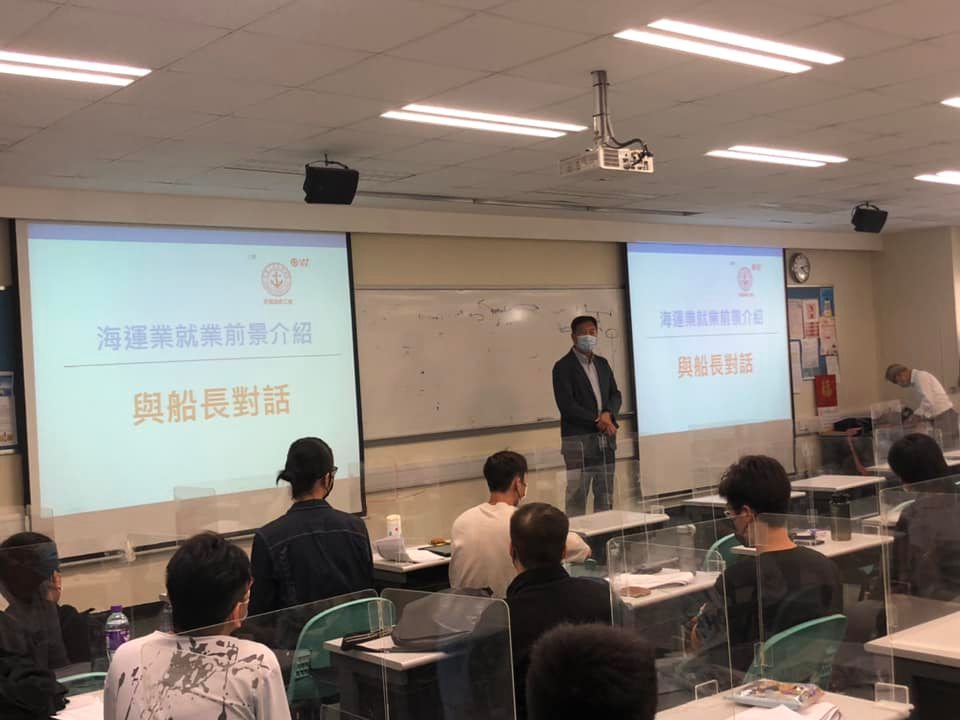 2021年11月16日(二),本會主席張世添連同船公司管理層代表及現職領航員等航運界代表前往海事訓練學院與現屆航海學生進行分享。