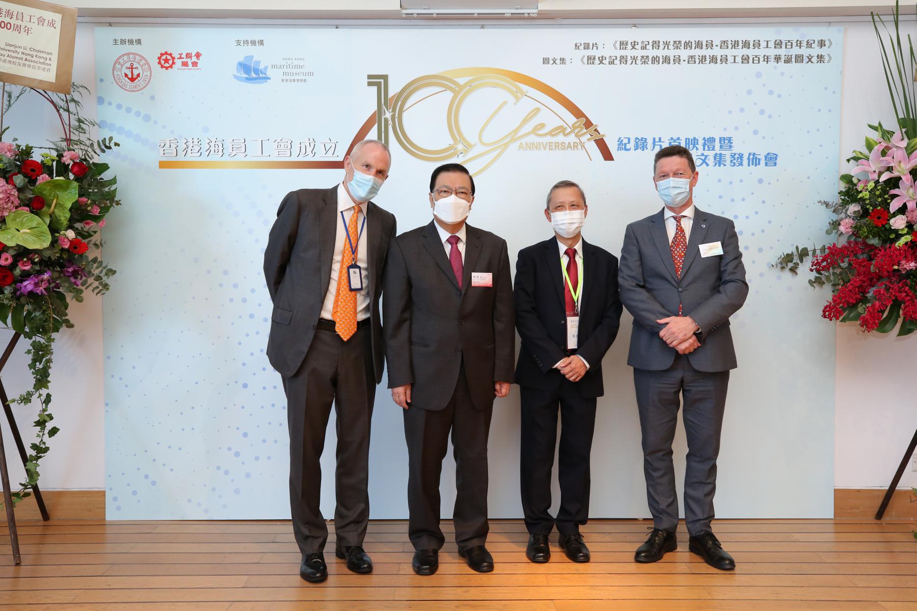 為慶祝工會成立100周年,香港海員工會今天(4月10日)在香港海事博物館舉辦「紀錄片首映禮暨圖文集新書發佈會」,與大家共慶香港海員工會百年華誕,並回顧走過的崢嶸歲月。期望年輕一代能夠通過了解工會歷史去認識現在的社會,展望未來,為香港繁榮穩定而努力,為國家的發展建設而奮鬥。